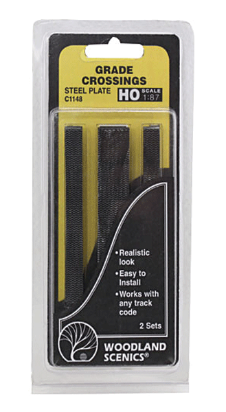 Realistic looking and ready to place. Injection molded plastic wood planks are notched to fit over rail spikes. Includes shims to correspond to proper code - cut as needed. Two crossings in each package. Works for 2 and 3-rail.