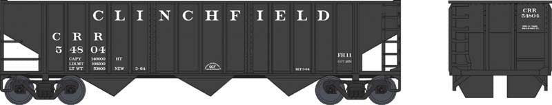 HO Scale Bowser 70-Ton 14-Panel 3-Bay Hopper - Ready to Run -- Clinchfield #54856 (black, Spelled-Out Roadname)