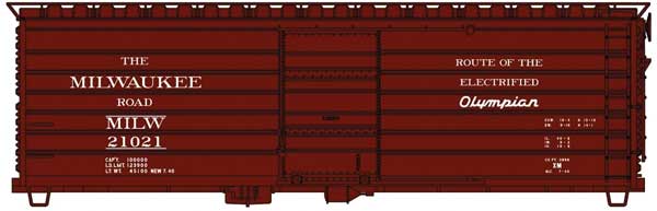 Milwaukee Road (1939-1940 As-Built Scheme; Boxcar Red, Olympians Slogan)