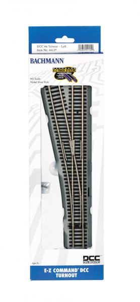 E-Z Command® E-Z Track® DCC decoder-equipped turnouts give you control of your trains and turnouts from your E-Z Command Controller System (sold separately). These HO E-Z Track components feature nickel silver rail, gray roadbed, electrically wired frogs for reliable operation and require no special wiring or control boxes. These turnouts are compatible and compliant with all NMRA-standards DCC systems. Not suitable for standard DC layouts.