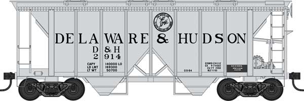HO Scale Bowser Manufacturing Co. 70-Ton 2-Bay Covered Hopper with Open Sides D&H #2914