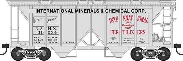 HO Scale Bowser Manufacturing Co. 70-Ton 2-Bay Covered Hopper with Open Sides IM#30038