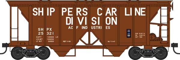 HO Scale Bowser Manufacturing Co. 70-Ton 2-Bay Covered Hopper with Open Sides SHPX#25325