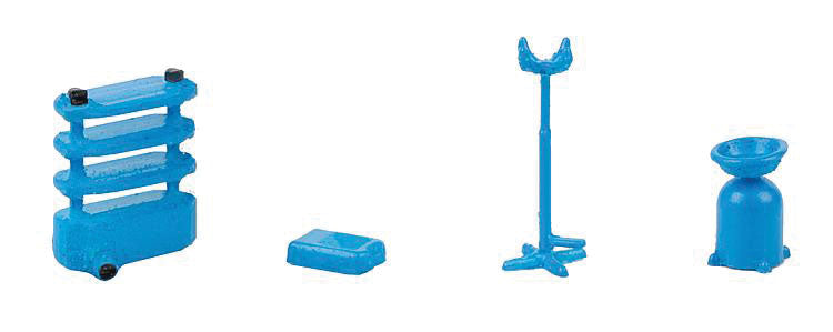 The HO Scale Oil Change Drain, Transmission Jack, Tool Cart by Faller GmbH is a detailed model featuring a multicolor design suitable for scenery setups in model railroads. Compatible with HO scale trains, this product adds realism to your layout by providing a functional detail for an oil change and maintenance scene. Made by the reputable brand Faller, this accessory is a must-have for any model train enthusiast looking to enhance their collection with intricate and authentic elements.