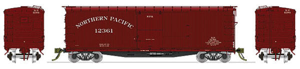 Starting in 1923 the Northern Pacific ordered more than 4,000 double-sheathed cars in the 10000-13999 series. This large group shared many common features, including steel ends with lumber doors, radial roofs and lever handbrakes. Amazingly, these cars lasted in revenue service until 1970 and in company service for another 12 years. Because of their large number they could be found on freight trains across North America. Features include full underframe detail with riveted center sill, AB or K brakes as appropriate and formed wire grab irons installed at the factory.