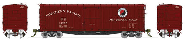 Starting in 1923 the Northern Pacific ordered more than 4,000 double-sheathed cars in the 10000-13999 series. This large group shared many common features, including steel ends with lumber doors, radial roofs and lever handbrakes. Amazingly, these cars lasted in revenue service until 1970 and in company service for another 12 years. Because of their large number they could be found on freight trains across North America. Features include full underframe detail with riveted center sill, AB or K brakes as appropriate and formed wire grab irons installed at the factory.