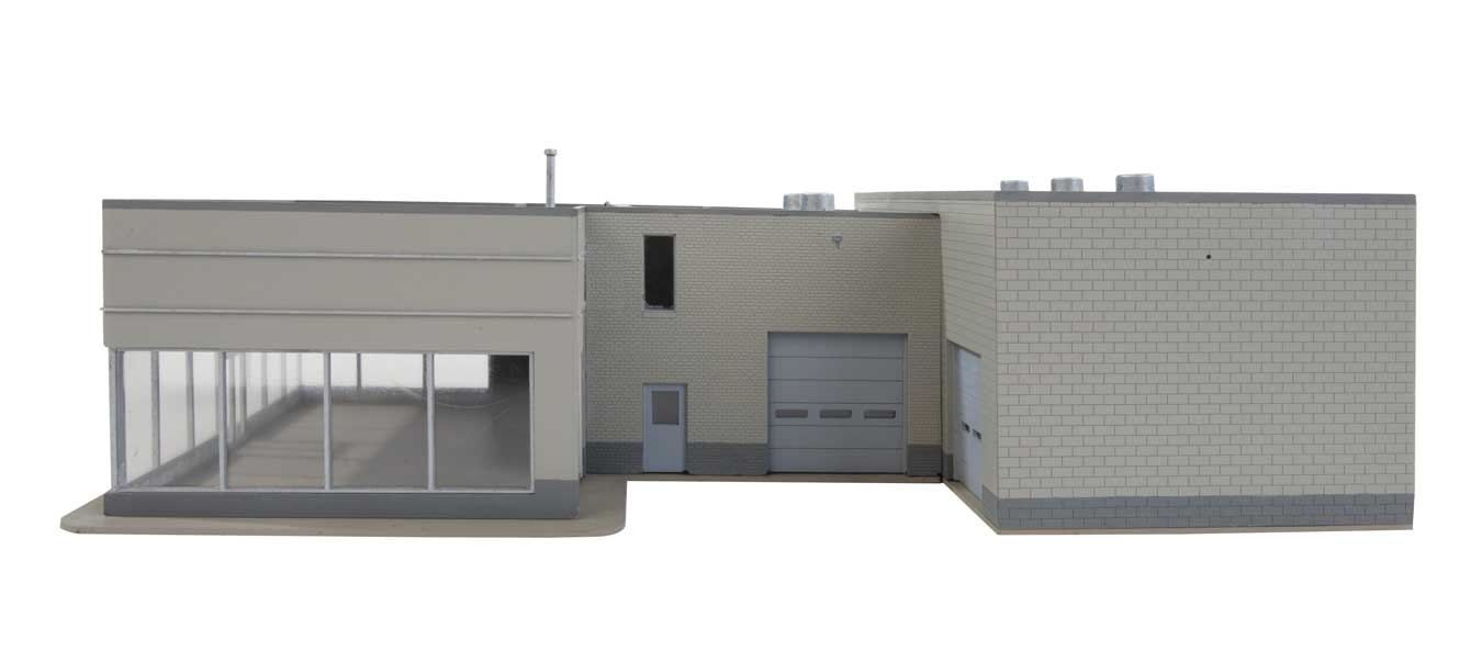 The Walthers Cornerstone International(R) Truck Dealership kit makes it easy to add a dealership building and service structure to your layout. This modern-era building features brick and block construction with big showroom windows, non-operating exterior light details, roof vents, authentic licensed printed dealership signage including a freestanding tower sign. The International Truck Dealership will look great near your modern industrial park or anywhere trucks run on your layout. As shown the kit measures: 8-7/8 x 12-1/4 x 3-7/8" 22 x 31.1 x 9.3cm