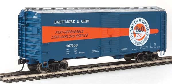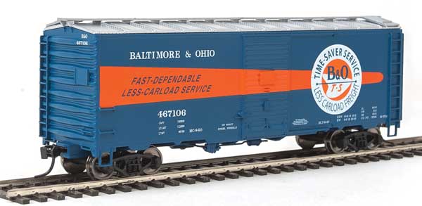 Baltimore & Ohio #467106 (blue, silver, orange; Time-Saver Service Logo)