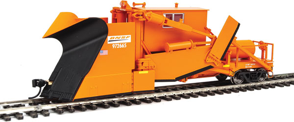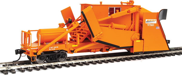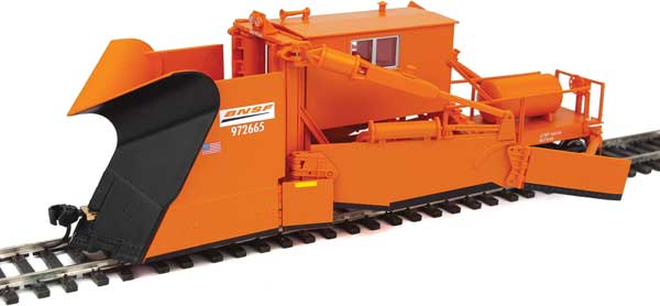 Based on equipment in BNSF service, this WalthersProto Jordan Spreader features a horizontal air tank, a modern horizontal headlight and the air horn mounted on the right-front of the cab.