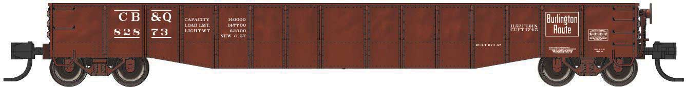 N Scale Bluford Shops 52'6" 15-Panel Mill Gondola - Lightly Dented Sides CB&Q #82873