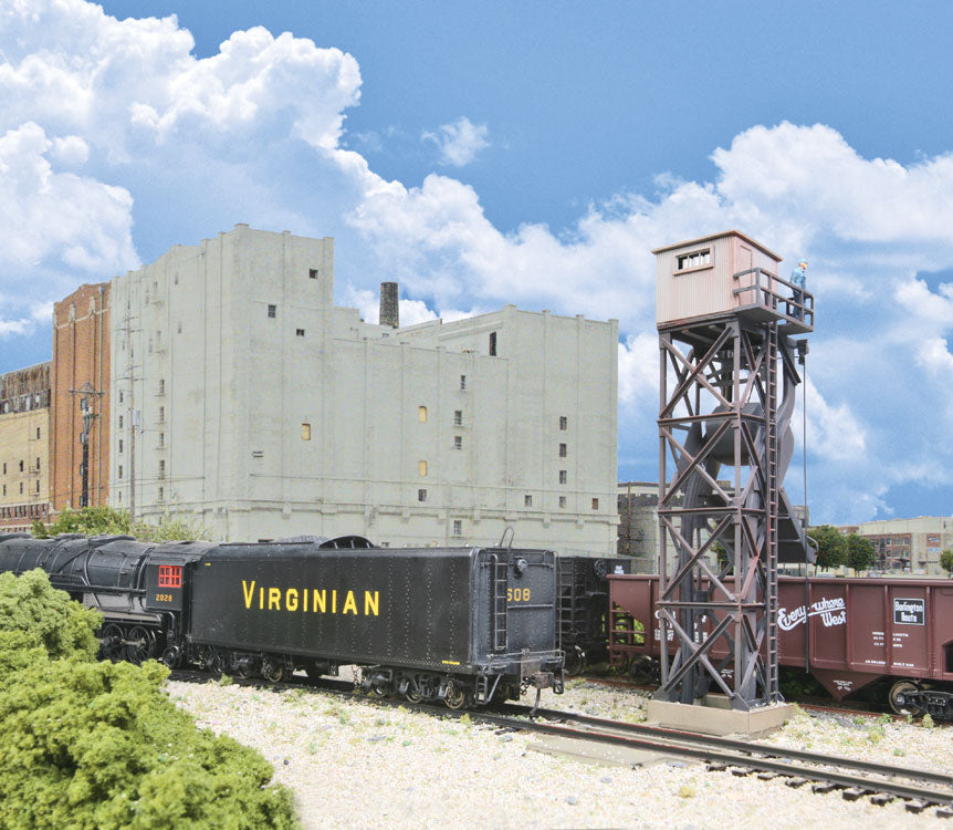 A must for any steam-era layout, equipment like the Walthers Cornerstone Cinder Conveyor and Ash Pit could be found in terminals large and small. Based on a Fairbanks-Morse design introduced in the late 1920s, conveyors like this served until the last day of steam. The N Scale kit includes a detailed steel tower, positionable dump chute and bucket, plus a complete under-track pit for more realism. As shown, the Cinder Conveyor and Ash Pit kit measures: 1-1/8 x 1-3/4 x 3" 2.9 x 4.5 x 7.6cm Pit depth: 1/2" 1.3cm. The Cinder Conveyor and Ash Pit is one of a wide variety of Cornerstone N Scale railroad buildings.