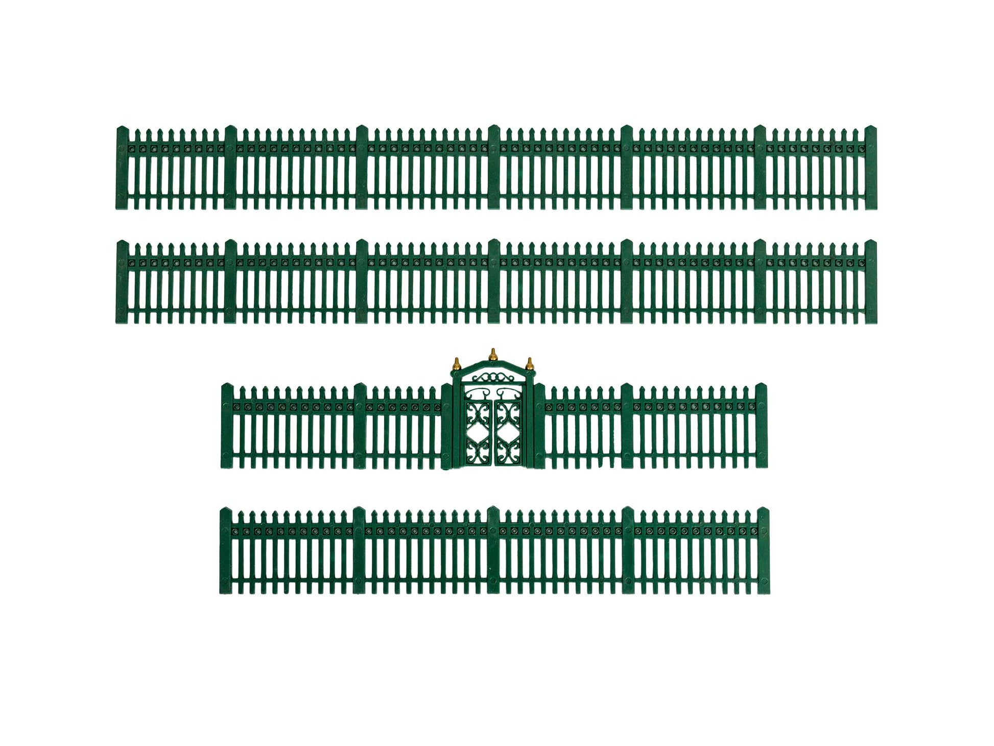 The O Scale Lionel Dark Green Fence is a detailed accessory designed for model railroads and trains. This fence, made by the renowned brand Lionel, adds a realistic touch to your scenery with its dark green color. Perfect for creating a charming and authentic look to your layout, this fence is compatible with O gauge model railroads and is sure to enhance the overall aesthetics of your collection.