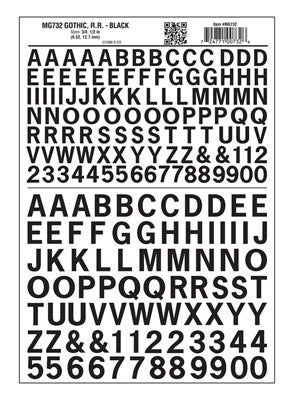 Dry Transfer Alphabet & Numbers - Railroad Gothic - 3/8 & 1/2" 1 & 1.3cm