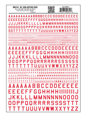 Dry Transfer Alphabet & Numbers - 45-Degree USA Gothic (Military Style)