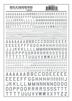 Dry Transfer Alphabet & Numbers - 45-Degree USA Gothic (Military Style)