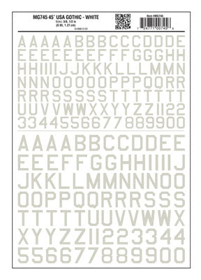Dry Transfer Alphabet & Numbers - 45 Degree USA Gothic (Military; 3/8 & 1/2")