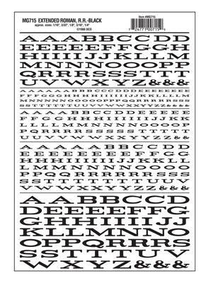 Dry Transfer Alphabet & Numbers - Extended Railroad Roman