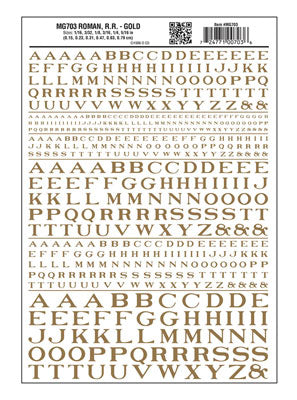 Dry Transfer Alphabet - Railroad Roman - 1/16, 3/32, 1/8, 3/16, 1/4 & 5/16"