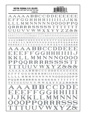 Dry Transfer Alphabet - Railroad Roman - 1/16, 3/32, 1/8, 3/16, 1/4 & 5/16"