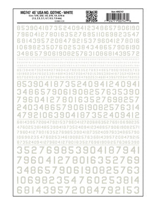 Dry Transfer Numbers Only - 45 Degree USA Gothic (Military Style)