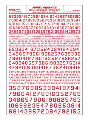 Dry Transfer Numbers Only - 45 Degree USA Gothic (Military Style)