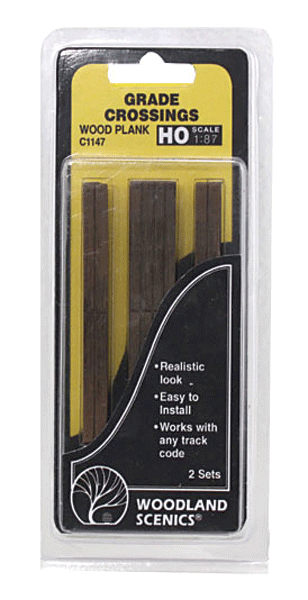 Realistic looking and ready to place. Injection molded plastic wood planks are notched to fit over rail spikes. Includes shims to correspond to proper code - cut as needed. Two crossings in each package. Works for 2 and 3-rail.
